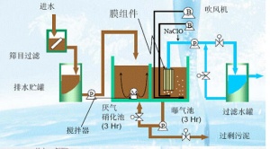 超濾膜分離活性污泥法的工藝原理:對(duì)廢水進(jìn)行預(yù)處理,進(jìn)入曝氣池,曝氣池中曝氣處理后,通過增壓泵將活性污泥混合物送入膜模塊(膜組件也直接浸入曝氣池,混合液通過真空泵吸入進(jìn)入膜模塊),部分水通過膜表面被稱為處理出水進(jìn)入后一級(jí)處理過程。剩余的污泥濃縮物通過回流泵(或直接)返回到曝氣池。曝氣池中的活性污泥在膜組件分離下通過去除有機(jī)污染物而增殖。當(dāng)濃度超過某一濃度時(shí),必需定期從儲(chǔ)罐排出一部分污泥。