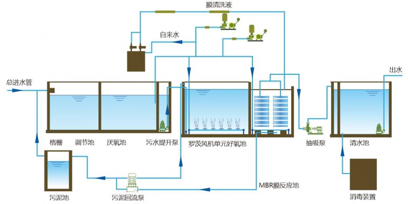物理化學(xué)處理是一種通過(guò)化學(xué)混凝反應(yīng)與物理沉淀、吸附、過(guò)濾、消毒相結(jié)合的污水處理方法。采用混凝沉淀(氣浮)技術(shù)與活性炭吸附技術(shù)相結(jié)合的基本方式,通過(guò)投加絮凝劑和助凝劑對(duì)污水進(jìn)行充分?jǐn)嚢?,?shí)現(xiàn)混凝,經(jīng)沉淀、過(guò)濾和消毒處理后,污水達(dá)到回用標(biāo)準(zhǔn)。該處理方法主要用于處理高質(zhì)量雜排,可間歇運(yùn)行,不需污泥處理。應(yīng)用在小型中水工程的處理,其主要優(yōu)點(diǎn)是處理過(guò)程短,操作和管理簡(jiǎn)單方便,占用面積相對(duì)較小,但與生物處理相比,運(yùn)行成本高,出水水質(zhì)受混凝劑種類和投加量的影響,有機(jī)物的波動(dòng)和去除效果較差。